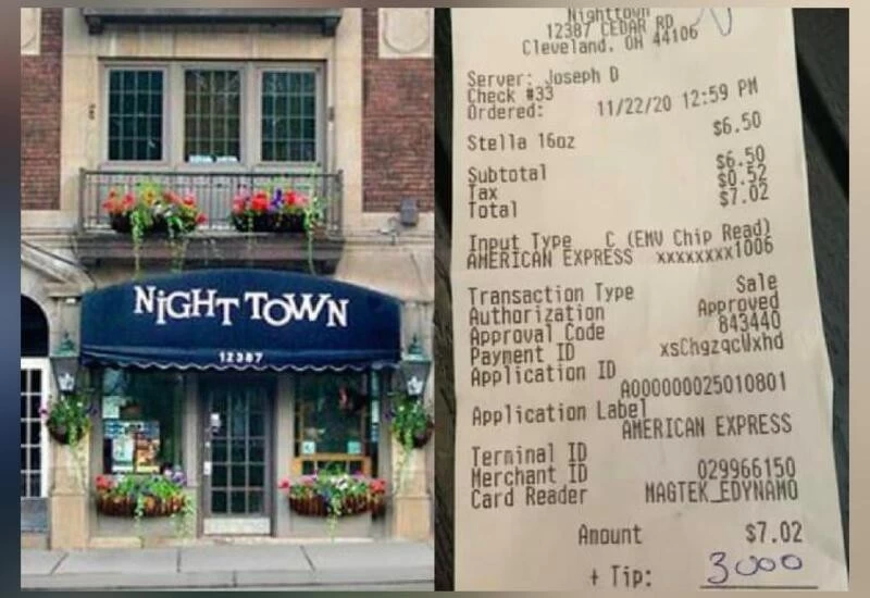 Cleveland: A customer left a USD 3,000 tip for a single beer as a restaurant voluntarily closed because of the COVID-19 pandemic.