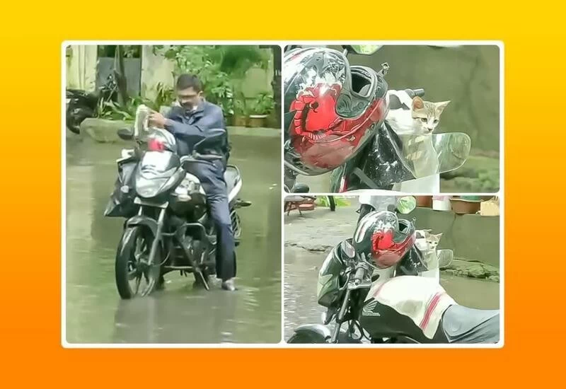 The video is becoming increasingly viral on social media, where the person is seen saving kittens from the rain and how he has kept the kitten on his bike.
