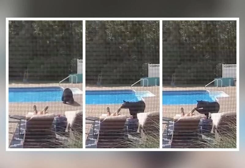 Washington: A curious bear gave a Massachusetts man a surprise wake up call from his poolside nap.