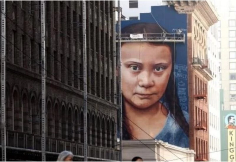 A massive portrait of Greta Thunberg gazed down onto San Francisco on Tuesday night after an artist unveiled a mural of the Swedish teen activist in a bid to remind residents of the dangers posed by climate change.