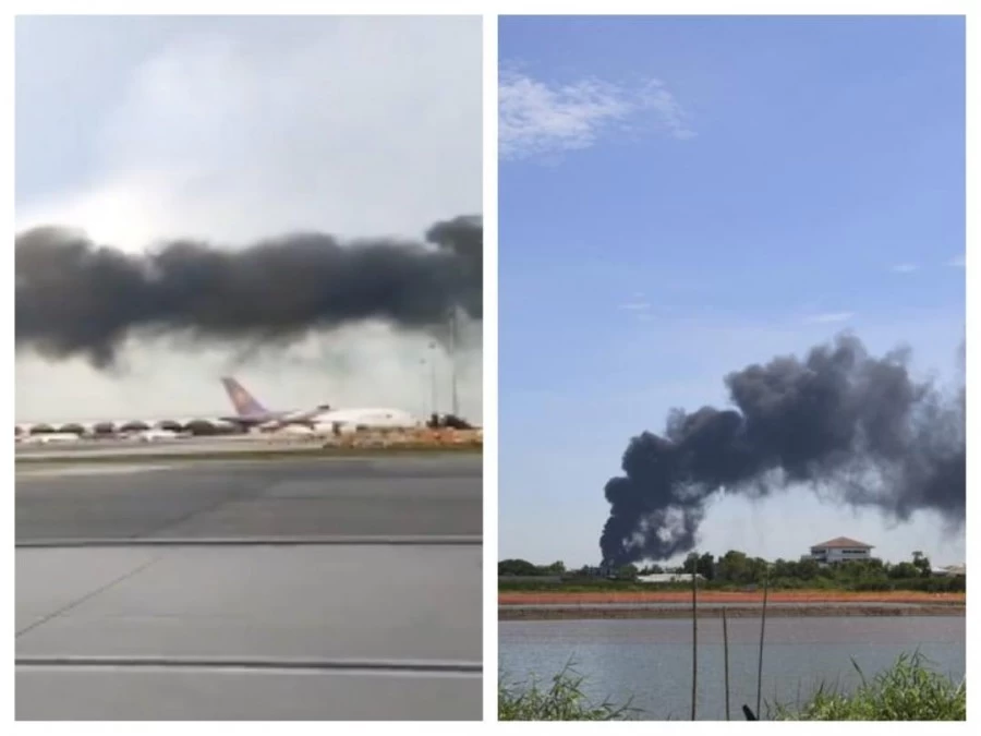 The fire broke out early in the morning at a foam and plastic pallet manufacturing factory in a southeastern area of Bangkok near Suvarnabhumi Airport.