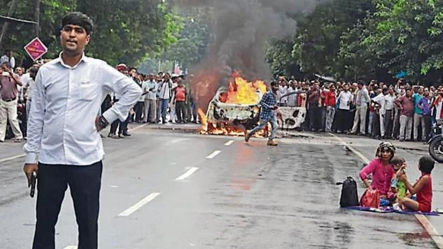 “He set his own car on fire and when attempts were made to control him, he fired in the air and kept on addressing (people) on a public address system,” the SSP said.