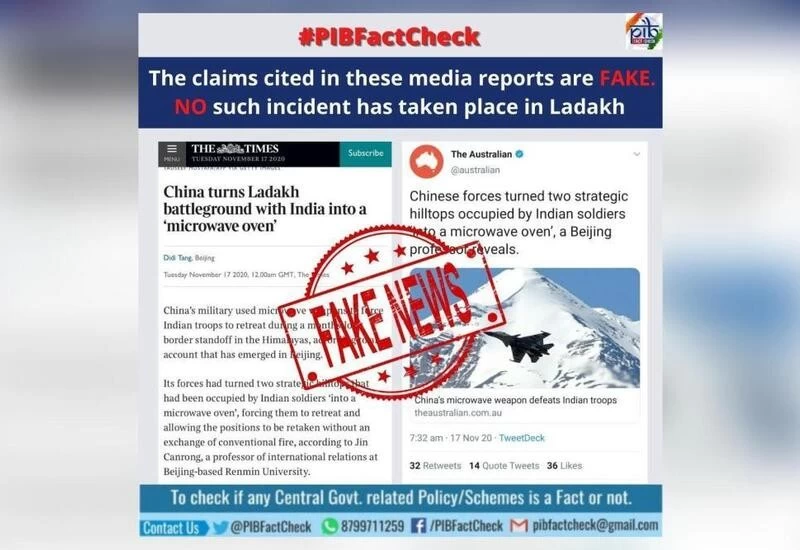 "Media articles on employment of microwave weapons in Eastern Ladakh are baseless. The news is FAKE," the Indian Army said in a tweet.