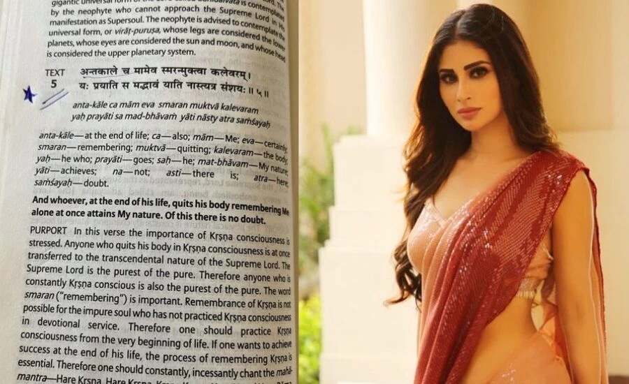 Bollywood | Actress Mouni Roy, who played the role of Sati in the TV show 'Devon Ke Dev Mahadev', is studying Geeta these days. He has shared some verses of Gita and their meanings on social media. Mouni Roy, while sharing the pictures of Gita, wrote, 'Even though Chapter 8 (Bhakti Yoga) is all about love and devotion, I felt a little more attached to 8.5 and 8.6.