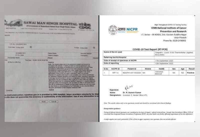 " I took a COVID-19 test in the Lok Sabha's premises and was declared positive. Then I was tested at Jaipur's SMS medical and the report said I am negative. Which report should be considered accurate?" he tweeted in Hindi, sharing photographs of the two medical documents.
