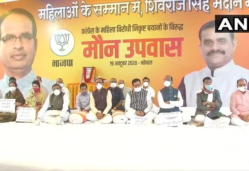 Madhya Pradesh CM, along with state ministers Narottam Mishra, Bhupendra Singh, Vishwas Sarang and some women members of the BJP began the 'maun vrat' (silent fast) at Minto Hall in Bhopal at 10 am.