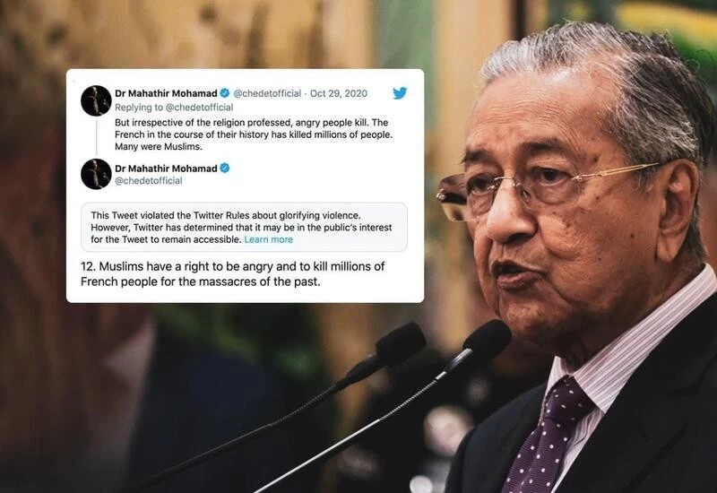 Mohamad's tweets have come on the day when an attacker killed at least three people including a woman who he beheaded in the French city of Nice. The incident is being treated as a "terrorist" attack. The day also saw a Saudi man getting arrested in Jeddah after he attacked a guard of the French embassy in the city in Saudi Arabia.