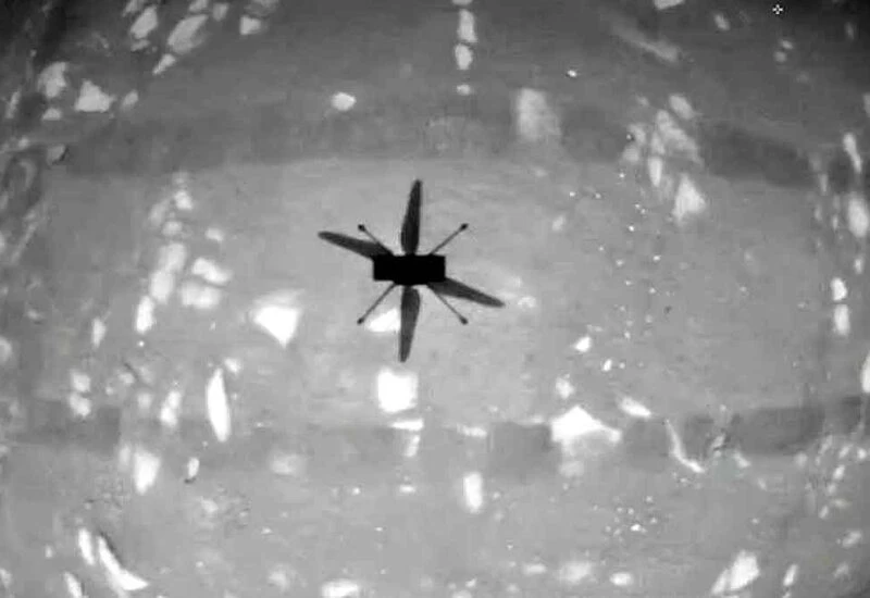 American Space Agency NASA rated history on April 19, 2021. At 4 o'clock in the afternoon, the helicopter was blown on another planet. This helicopter name is Engineer's helicopter (Ingenuity Mars Helicopter). First it was decided that it will be the first flight on 11th April. But it was fixed on the date of April 14, 2021. But Nasa has said that during the helicopter's Test flight, the timer was not working properly, so the flight was postponed. This photo engine is taken from the onboard camera of the helicopter. Below is the shadow of the surface and helicopter.