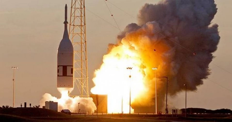 In the test, an unmanned Orion capsule was launched by a mini-rocket — a repurposed first stage of an intercontinental ballistic missile. Fifty-five seconds after the launch, at an altitude of 9,500 m, a rocket-powered tower on top of the crew module ignited its engines to quickly pull the Orion away from a hypothetical rocket experiencing problems.