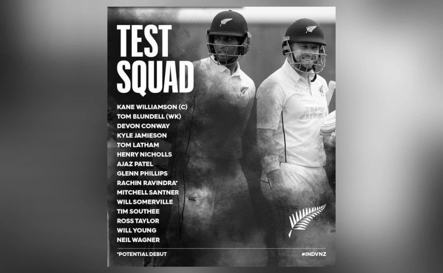 Kane Williamson (c), Tom Blundell (wk), Devon Conway, Kyle Jamieson, Tom Latham, Henry Nicholls, Ajaz Patel, Glenn Phillips, Rachin Ravindra, Mitchell Santner, Will Somerville, Tim Southee, Ross Taylor, Will Young, Neil Wagner