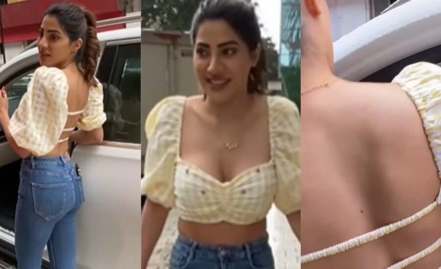 In this video you will see that Nikki Tamboli was seen wearing denim jeans and low-waist jeans with yellow revealing crop top. During this, for fear of slipping, the actress took off her high heels and reached near the car holding her in her hand.