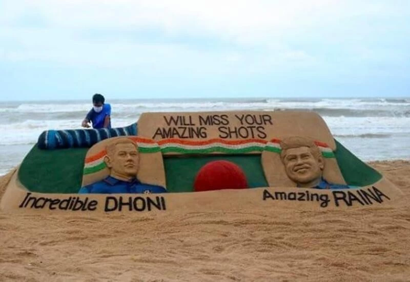 To celebrate the two iconic cricketers, renowned sand artist Sudarsan Pattnaik created a stunning artwork on Puri beach, Odisha. He made mesmerising sculptures of Dhoni and Raina with sand. His artwork also featured a bat, ball and a playing ground. "Will miss your amazing shots," Pattnaik added these words to the sand art.