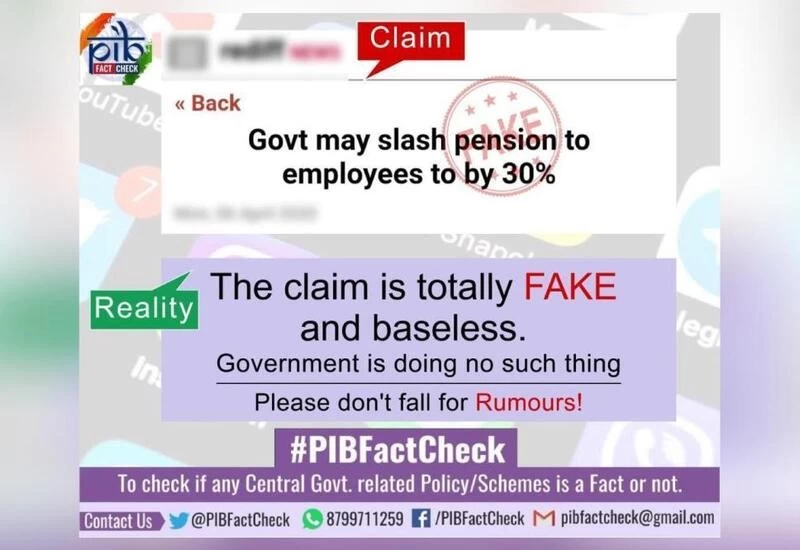New Delhi: As the country is staring at a financial emergency because of the 21-day national lockdown, rumours were spread that the government would reduce the pensions of its employees by 30 per cent and would terminate it altogether for those above the age of 80. The Press Information Bureau has clarified that this is fake news. “There is no such move in the government and such rumours are baseless,” the PIB tweeted.