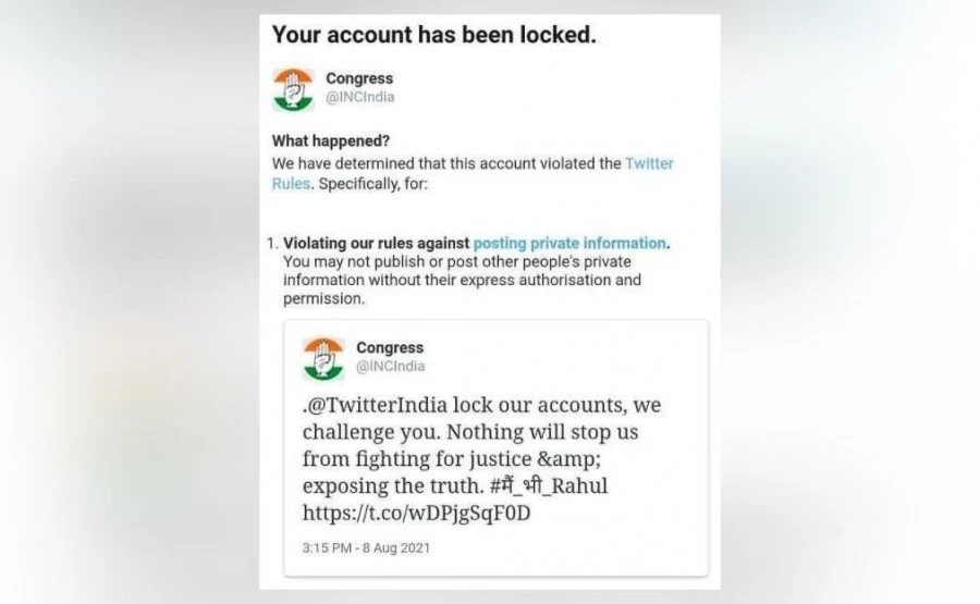 New Delhi: The Congress on Wednesday said Twitter accounts of four of its leaders were temporarily locked, a development that came on a day the social media company confirmed in the Delhi high court that it locked the account of Rahul Gandhi for breaching its policy.