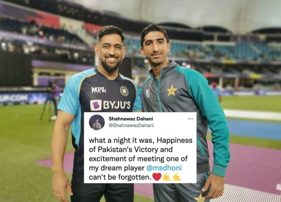 Sharing the photo with Dhoni, Dahani wrote in the caption, "what a night it was, Happiness of Pakistan's Victory and excitement of meeting one of my dream player msdhoni can't be forgotten".