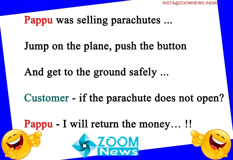 Today joke- Pappu was selling parachutes ... Jump on the plane, push the button And get to the ground safely ... Customer - if the parachute does not open? Pappu - I will return the money… !!