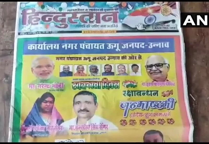 The advertisement was taken out by a local BJP leader and chief of the Nagar Panchayat of Uugu in Unnao, Anuj Dixit, congratulating people on the occasion of Independence Day and Raksha Bandhan.