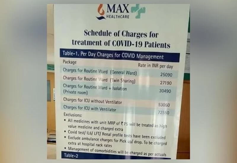 Tweeting a clarification for the same, Max Healthcare tweeted: "We would like to clarify that this picture related to the pricing of COVID treatment at Max Patparganj (incorrectly as Max Gurgaon in some tweets) does not carry all facts. The stated cost includes routine tests, routine medicines, nurse and doctor charges etc."