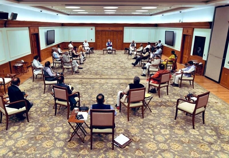 New Delhi: Prime Minister Narendra Modi on Wednesday chaired the weekly cabinet meeting at 7 Lok Kalyan Marg in Delhi. During the meeting, the ministers were seen seated at a distance from each other, maintaining social distancing as a measure to counter coronavirus.