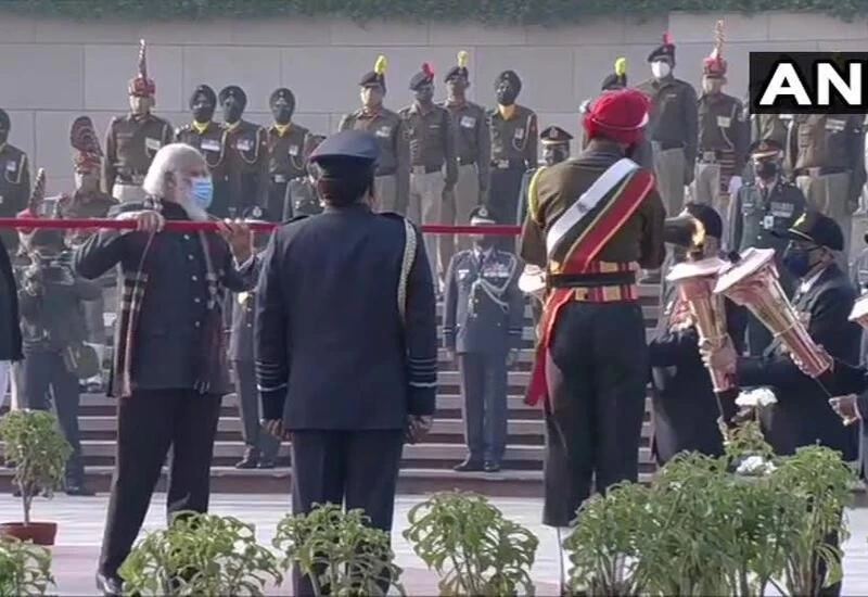 He was received by Union Defence Minister Rajnath Singh at the venue. On this occasion, the Defence Minister unveiled the logo for 'Swarnim Vijay Varsh.'