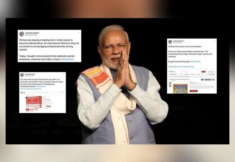 NEW DELHI: Prime Minister Modi on Monday marked International Women's Day by purchasing several products that celebrate their "enterprise, creativity and India's culture".
