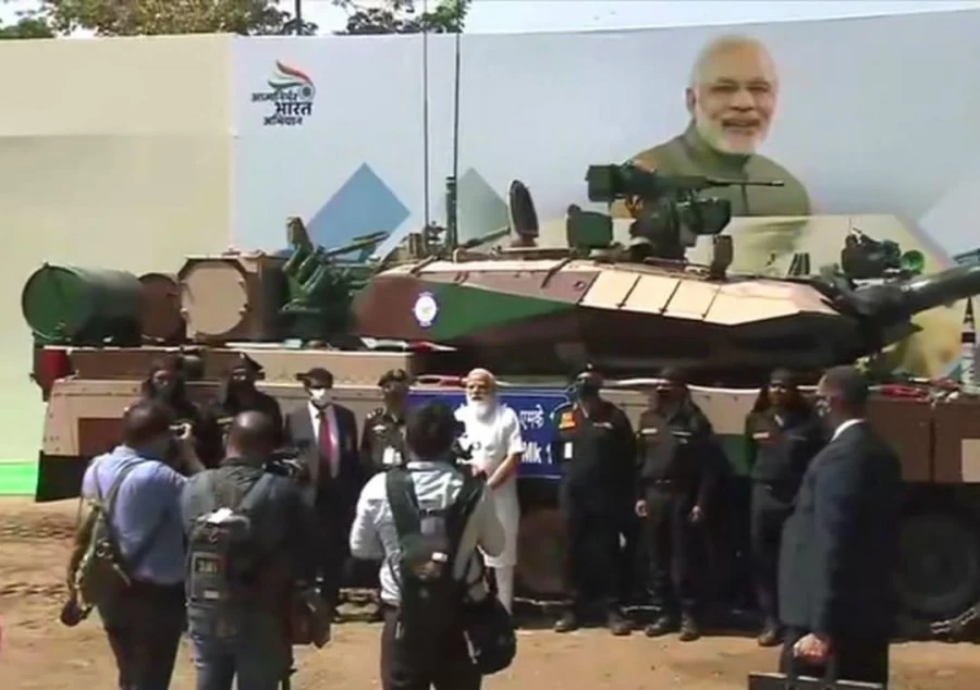 PM Modi accepted a salute by the state-of-the-art tank, indigenously designed, developed, and manufactured by the Defence Research and Development Organisation's (DRDO) Combat Vehicles Research and Development Establishment in Chennai, reported news agency PTI.