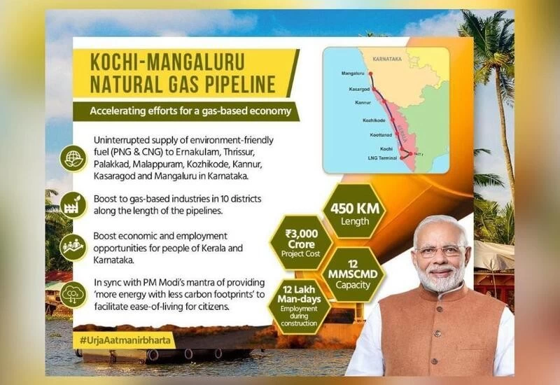 Inaugurating a 450-km natural gas pipeline between Kochi in Kerala to Mangaluru in Karnataka, he said India under his government is seeing unprecedented work on highways, railway, metro, air, water, digital and gas connectivity which will aid economic development.