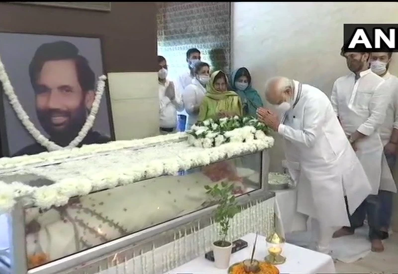 New Delhi: Prime Minister Narendra Modi paid last respects to Union Minister and Lok Janashakti Party (LJP) leader Ram Vilas Paswan at the latter's residence in New Delhi on Friday.