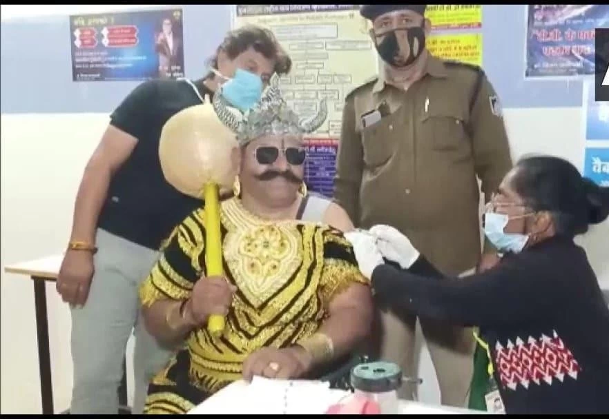 In a quirky campaign, a policeman in Indore dressed up as Yamraj and got vaccinated.