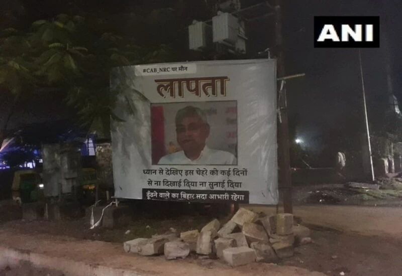 The posters, with large pictures of the Chief Minister, put up by unknown persons read, "Silent on #CAB-NRC... Missing... Watch this face with attention, he has neither been seen nor heard... Bihar will forever be indebted to the person who finds him."