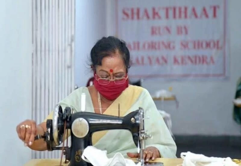 New Delhi: First Lady Savita Kovind on Wednesday stitched face masks at Shakti Haat in the President's Estate as part of the fight against COVID-19.