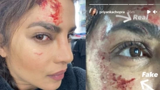 Priyanka Chopra has wounded herself at some point of the making of Citadel. Earlier in the day, she had shared an image wherein she posed with a bloodied face and asked fans 'what is actual and what is not?' She had an injury on her eyebrow.