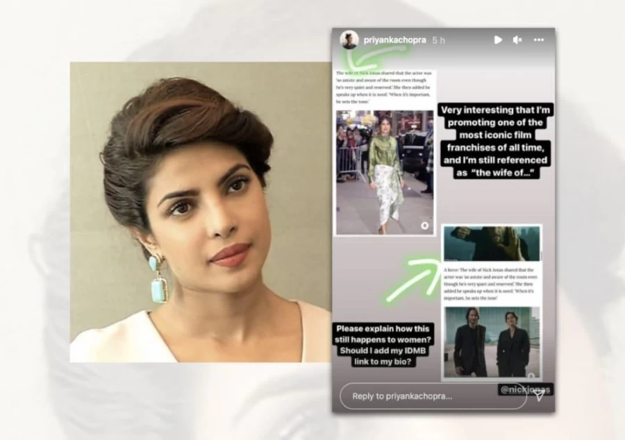 Bollywood : Priyanka Chopra slammed a news outlet after it referred to her as 'wife of Nick Jonas'. Taking to Instagram Stories, the actor shared screenshots of the text and asked if she should add her IMDb link to her bio. She also asked explanation as to how this can still happen to women.