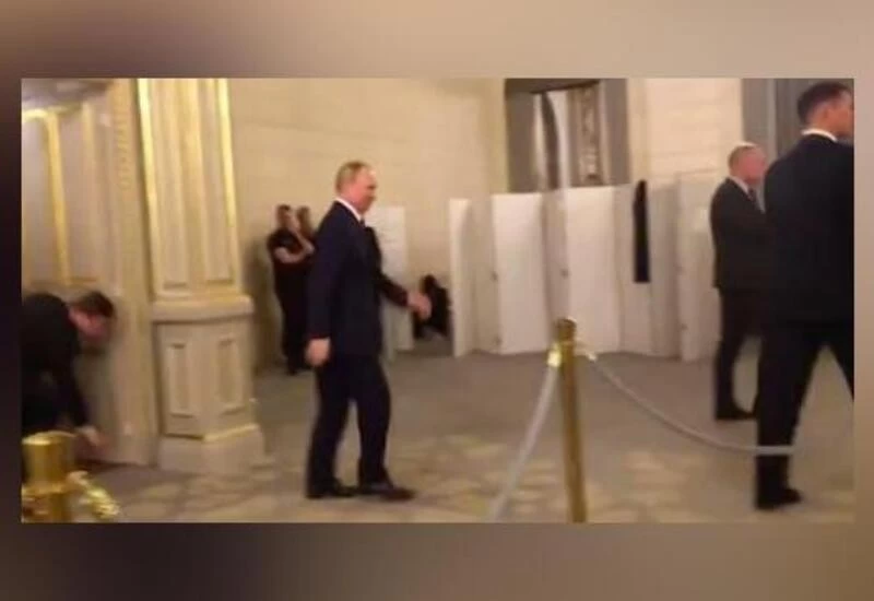 The Russian leader, 67, was filmed leaving the bathroom after five bodyguards made sure his surroundings were safe.