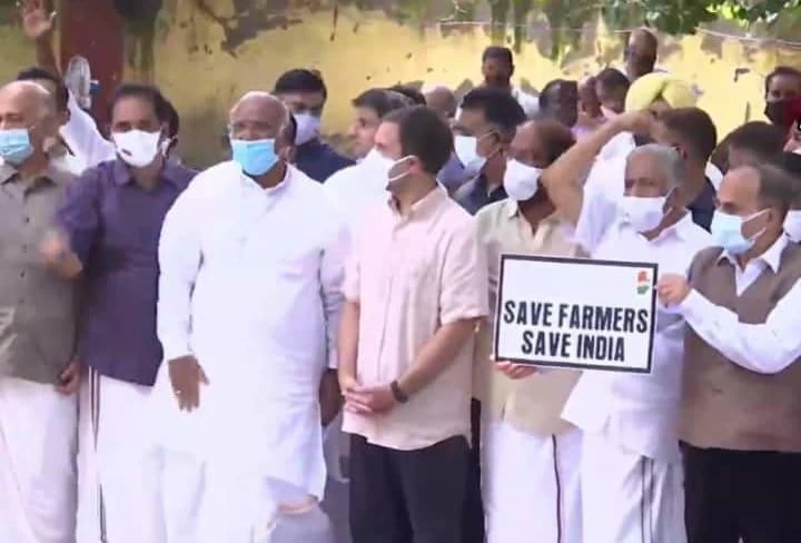 Earlier in the day, a meeting was held in the chamber of Kharge, the Leader of Opposition in the Rajya Sabha, wherein it was decided the Opposition leaders would join the protesting farmers.