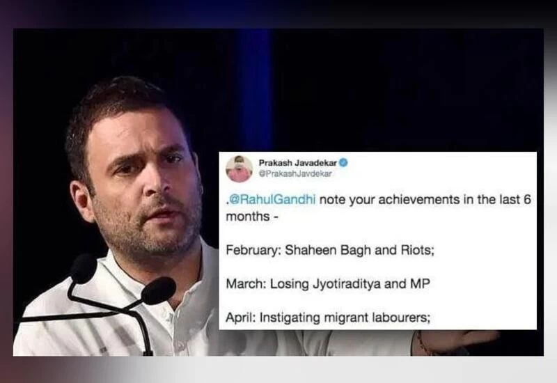 Union Minister Prakash Javadekar was quick to respond to Gandhi's dig. In Javadekar's list of the Congress leader's "achievements" in the last six months were Shaheen Bagh and riots in February, losing Jyotiraditya Scindia and MP in March, instigating migrant labourers in April, the sixth anniversary of the historic defeat of the Congress in May, defending China in June, the virtual collapse of the party in Rajasthan in July.