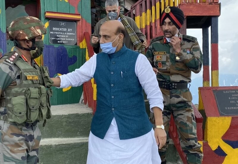 Singh, who was accompanied by Chief of Defence Staff Gen Bipin Rawat and Army Chief Gen MM Naravane, visited the North Hill post and was apprised about the situation at the border by senior officials.