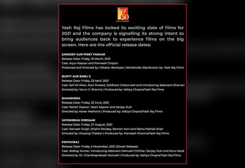 Bollywood Desk: It hasn’t been long since the government has permitted 100 percent occupancy in theatres after witnessing the crucial period pandemic and complete shutdown of the industry. And as the theatres are set to witness 100% occupancy, the filmmakers are eager to release their movies on the big screen and are busy reserving the dates for their movies. Amid this, Yash Raj Films also took it as an opportunity and made the big announcement as they confirmed the release date of its five much awaited movies.