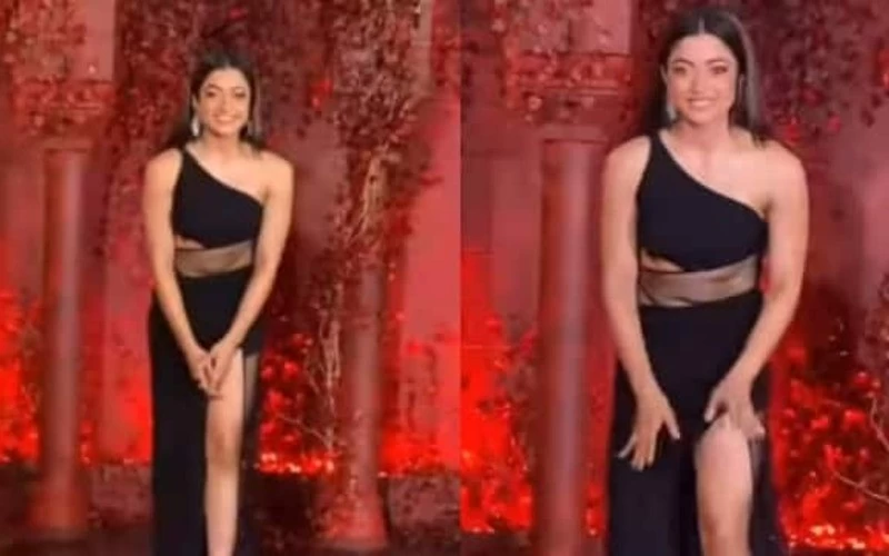 Rashmika Mandanna's cutout dress was Thai high slit. One side was transparent in the dress, due to which Rashmika was seen handling her dress. When she came to pose in front of the camera, she put both her hands forward and she looked bowed. Handling her dress, Rashmika soon leaves from there.