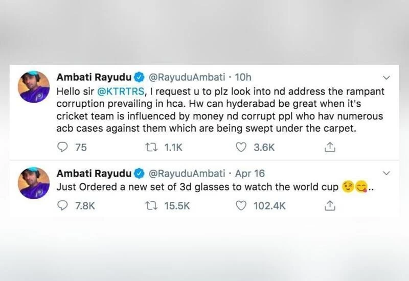 This was Rayudu's first tweet after his '3D glasses' tweet after the World Cup 2019 squad selection when all-rounder Vijay Shankar was chosen over him.