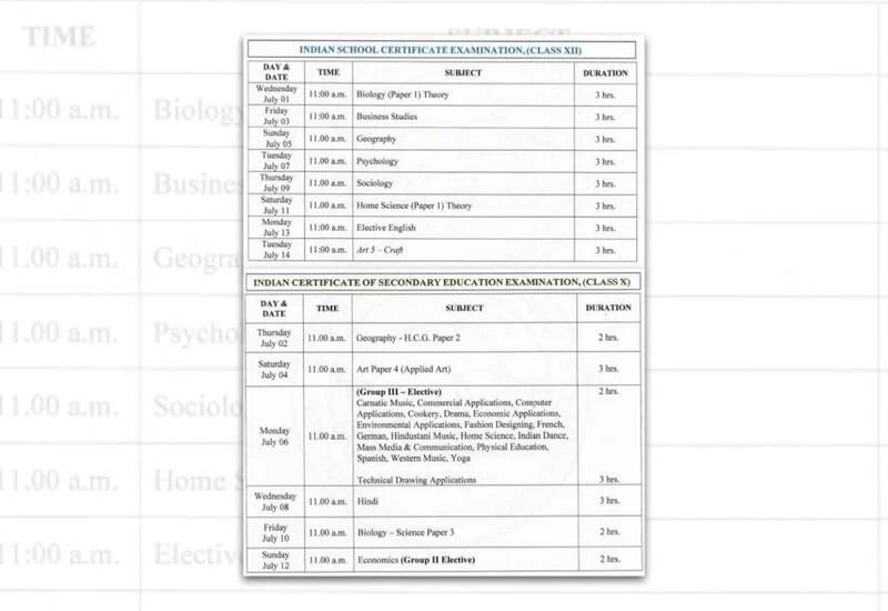 New Delhi: Council for the Indian School Certificate Examinations (CISCE) on Friday released the schedule of the remaining ICSE and ISC 2020 examinations on its official website.