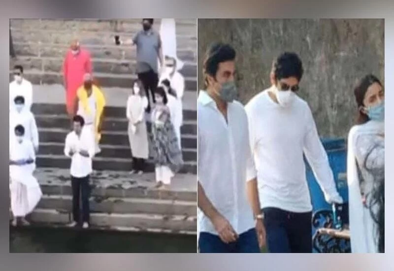 Bollywood Desk: Ranbir Kapoor, Neetu Kapoor, Alia Bhatt, Riddhima Kapoor Sahni and Ayan Mukerji were snapped at Mumbai's Banganga Tank on Sunday evening. The Kapoor's were accompanied with close relatives and friends as they performed puja and immersed the ashes of late veteran actor Rishi Kapoor. Earlier in the day, the Kapoor's had organised a prayer meet at their home. Photos and videos of their visit at South Mumbai's Banganga Tank quickly went viral. One of the video shows Ranbir, Riddhima and Neetu Kapoor seeking blessings from the pandit present at the spot. Another shows them sitting and performing the puja, while another video shows Ranbir handing over the ashes for the final immersion.