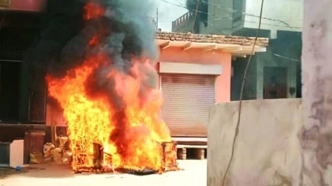 There was a ruckus in the village on Friday morning due to non-arrest of the accused gym operator in the case of kidnapping girl from Runkata of police station Sikandra area of Agra. Two houses of the accused gym operator were set on fire. On information, the force of several police stations reached the spot. The accused are being identified. Fire brigade reached the spot and doused the fire in the houses.