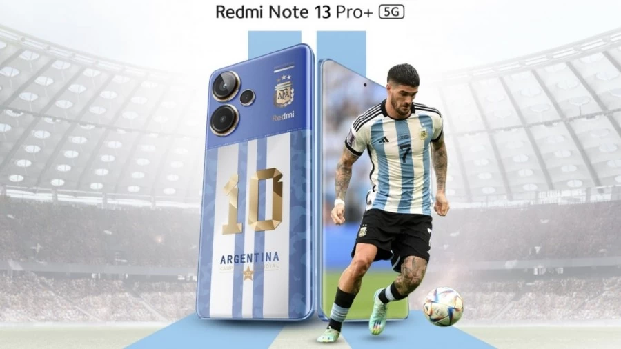 The World Champions Edition of Redmi Note 13 Pro Plus 5G has white and blue vertical stripes on the back, which are similar to the jersey of the Argentina national football team. The number “10” and the word “Argentina” are also printed on the back. The new smartphone also has Redmi branding in gold next to the camera sensor and the AFA logo, which also has golden rings to complete its theme.