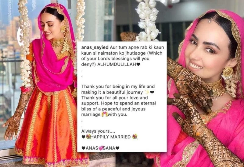 Sharing the pictures, she had written, “Loved each other for the sake of Allah. Married each other for the sake of Allah. May Allah keep us united in this Duniya and reunite us in jannah . Fabi ayyi ala-e rabbekumaa tokazzebaan. Which of the favours of your lord will u deny #sanakhan #anassayed #nikah #married #20thnov #alhumdulillah (sic).”