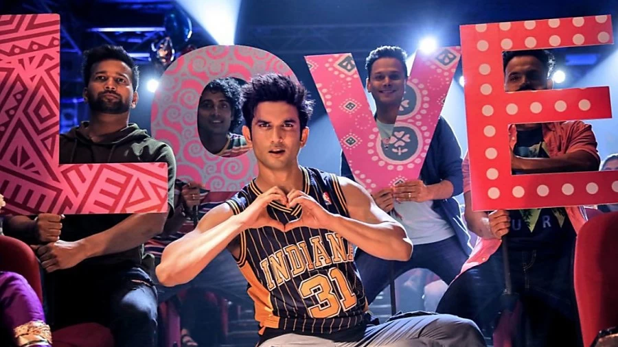 Sushant enters with a peppy walk and ends up in between the audience, dancing with them. He swings his co-star, Sanjana Sanghi on her feet and takes selfies with his friends.