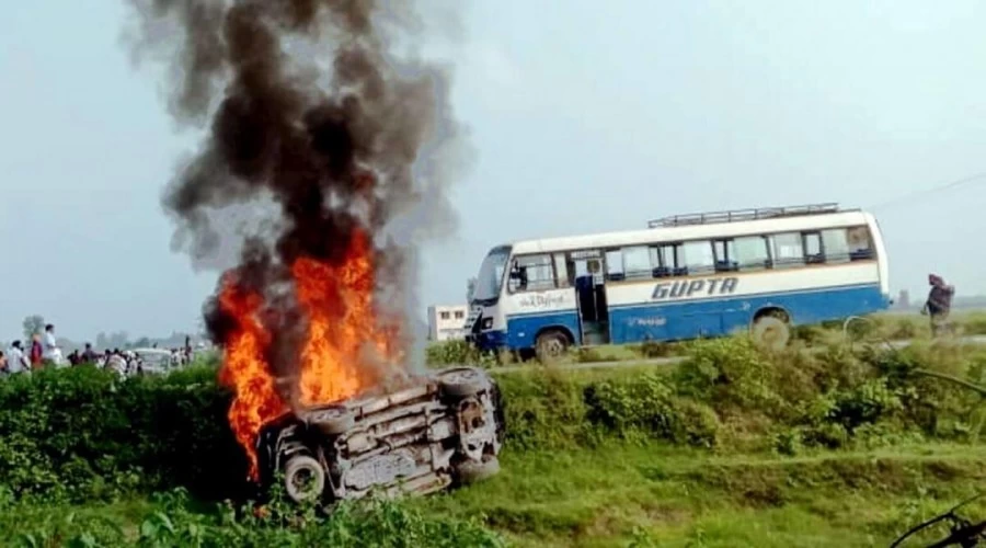 The first FIR in this incident has been filed regarding the mowing down of four farmers by a vehicle after which the violence erupted near Banbirpur village.