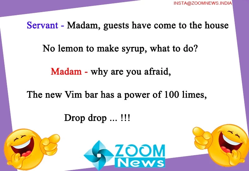 Today Jokes Servant - Madam, guests have come to the house No lemon to make syrup, what to do? Madam - why are you afraid, The new Vim bar has a power of 100 limes, Drop drop ... !!!