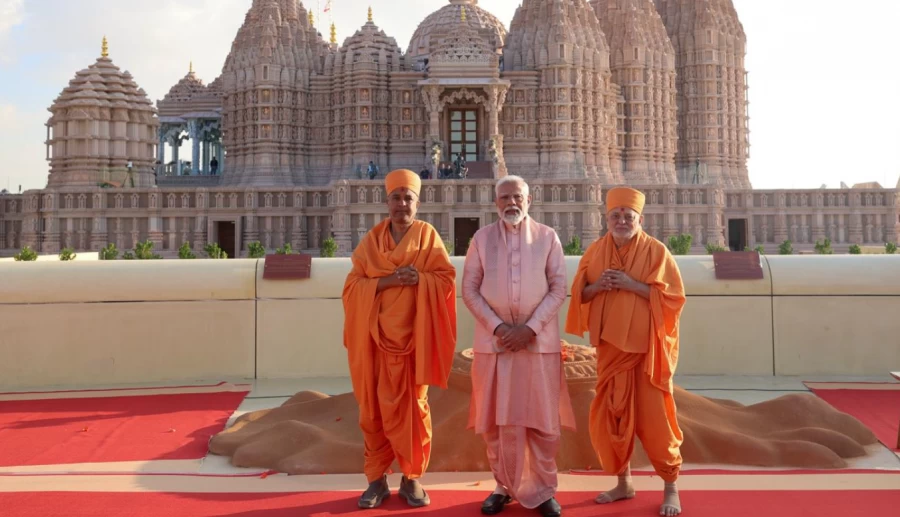 PM Modi In UAE: Prime Minister Narendra Modi inaugurated Shri Akshar Purushottam Swaminarayan Sanstha (BAPS) temple in Abu Dhabi on Wednesday. This is the first Hindu temple in the Gulf country. PM Modi said the inauguration of the temple is an important moment for the Hindu community in the Gulf country and India-UAE bilateral relations. This temple is built on 27 acres of land.