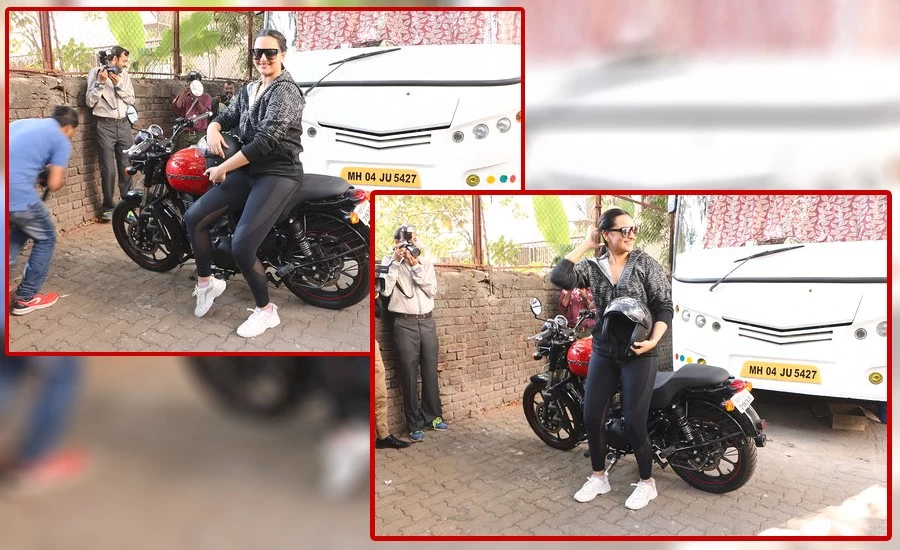 Sonakshi was spotted by the paparazzi as she was on her way to Mehboob Studios. She rode a red Royal Enfield and opted for a dapper look comprising a jacket which she paired with black pants, white sneakers, aviators, and most prominently, a helmet. Shocked by this, the pedestrians could not keep calm but block the actor's way for shooting videos and pictures of her. According to entertainment news reports, Sinha has very recently learnt riding and was excited to have a hands-on experience of riding a bike in the streets of Mumbai.